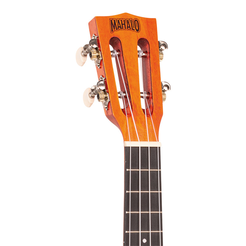 The Mahalo Island Series ukulele features a linden body with an arched back to produce an even blend of warm lows and bright highs. Aquila Super Nylgut strings and a Graph Tech NuBone saddle enhance the playing tension and resonance of this fine-sounding ukulele.