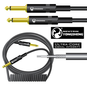 TGI Ultracore Guitar Lead - 6m / 20ft Straight / Coiled Guitar Lead (Neutrik Gold Jack Plugs)